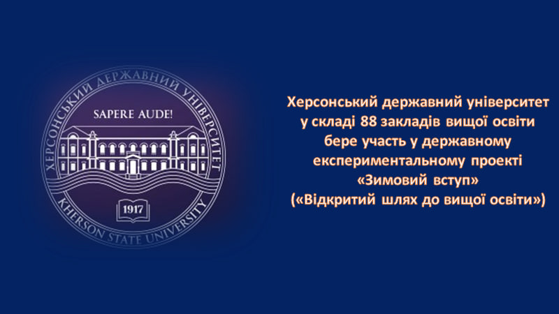Херсонський державний університет у 2026 році долучився до державного експериментального проекту «Зимовий вступ», який реалізується відповідно до Постанови КМУ від 10 грудня 2025 р. № 1628 «Про реалізацію експериментального проекту підготовки слухачів підготовчого відділення «Відкритий шлях до вищої освіти» у закладах вищої освіти».